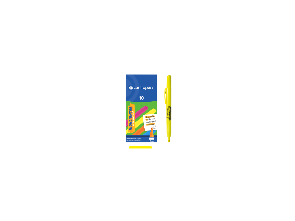 Zvýrazňovač Centropen 8722 je určen pro každodenní práci s textem. Díky klínovému hrotu umožňuje psát tenkou i širší stopou a ergonomický tvar zajišťuje pohodlné držení.
