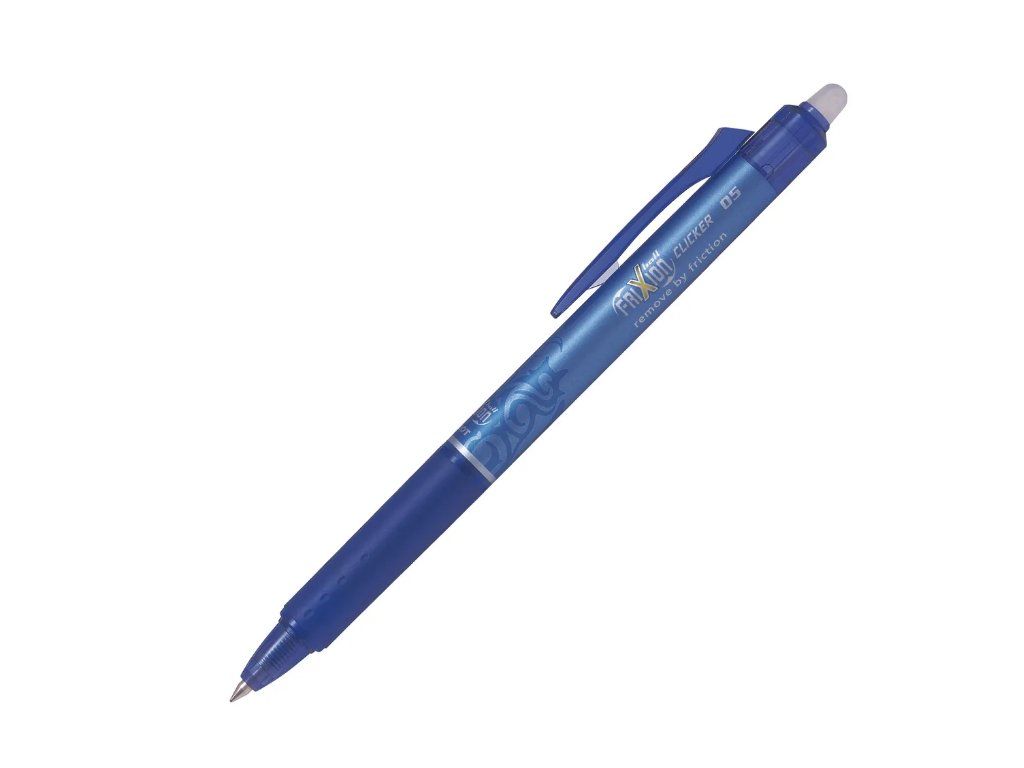 Pilot FriXion Clicker je oblíbený roller s termocitlivým inkoustem, který lze jednoduše vymazat a znovu přepsat na stejném místě. Mazání probíhá třením plastového zakončení pera o papír, čímž vznikne teplo a text se zneviditelní.