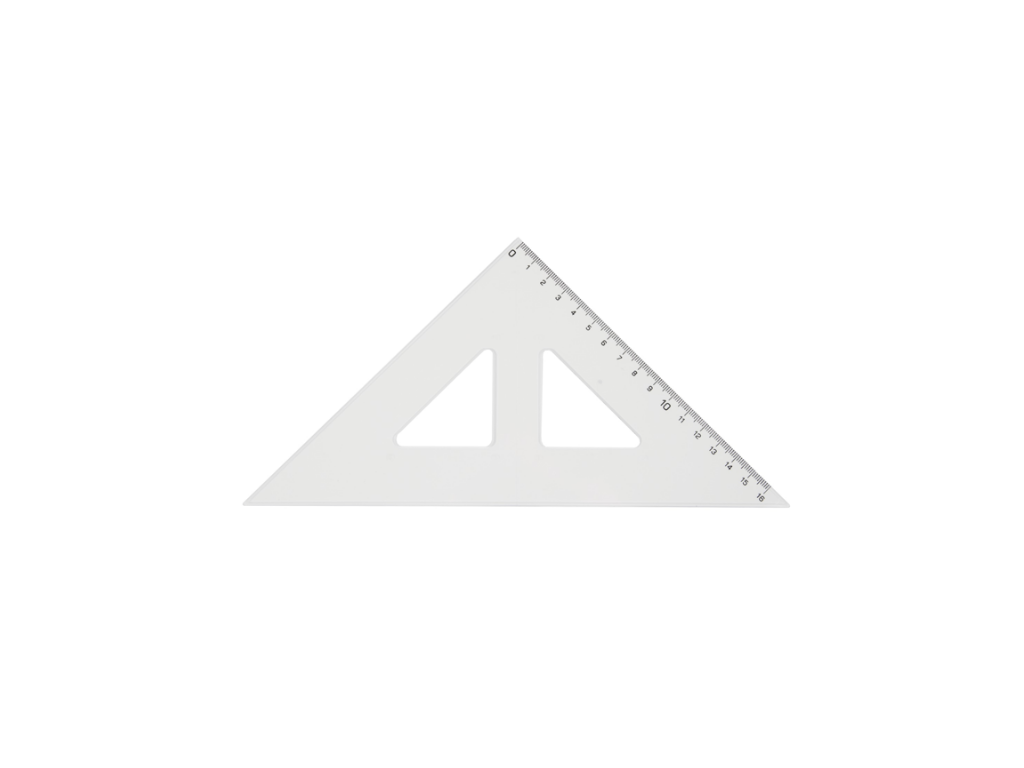 Trojúhelník s ryskou je základní školní pomůcka vhodná pro přesné rýsování a měření. Je vyroben z transparentního materiálu, který umožňuje lepší kontrolu nad podkladem při práci.